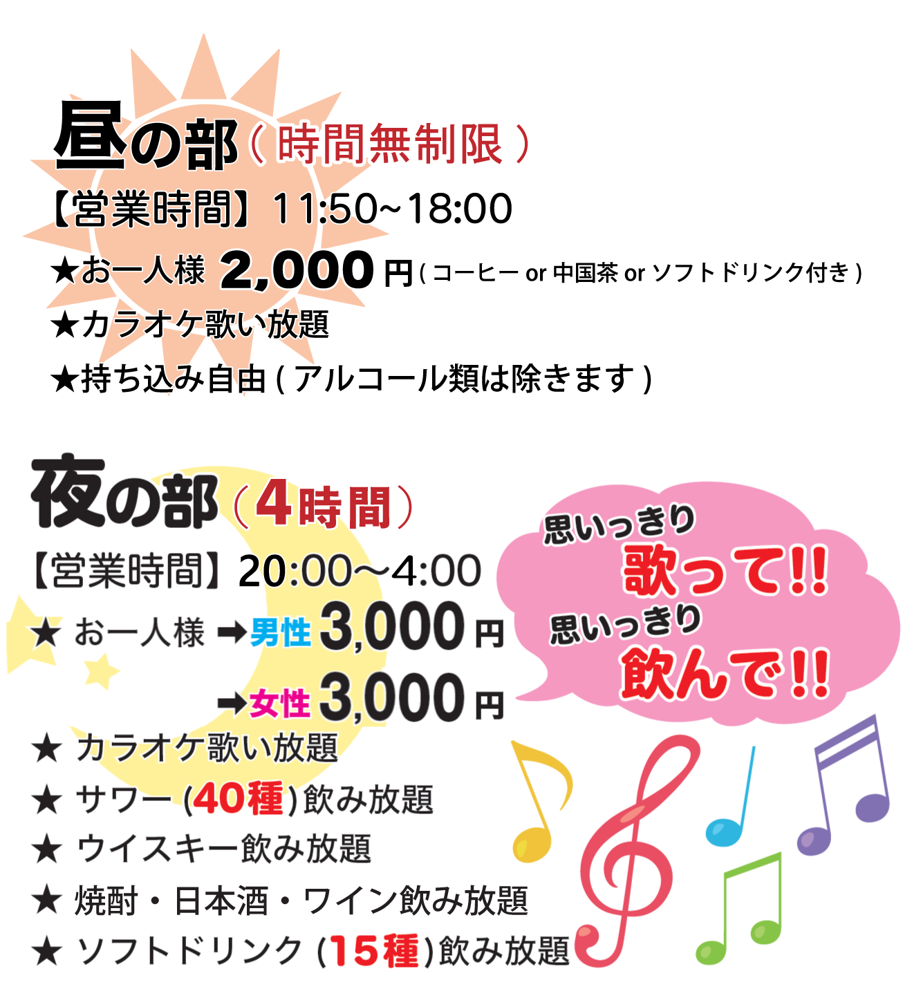 食べ物の持ち込みOK!長く居られて低価格がコンセプト!